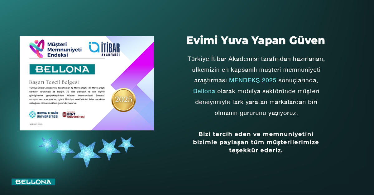 Türkiye İtibar Akademisi tarafından gerçekleştirilen 2025 yılı Müşteri Memnuniyeti Endeksi Araştırması sonuçlarına göre, Bellona mobilya sektörünün en çok memnuniyet sağlayan markası oldu. 12 - 27 Mayıs 2025 tarihleri arasında yapılan araştırmada Bellona, 72,1 puanlık skor elde ederek müşteri güveninin adresi olduğunu bir kez daha kanıtladı.