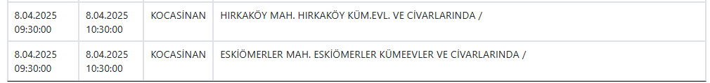 Yetkililer, kesintilerin bakım ve onarım çalışmaları nedeniyle gerçekleştirileceğini belirtirken, vatandaşların mağduriyet yaşamamaları adına gerekli önlemleri almaları istendi. Hangi mahallelerde kesinti yaşanacağına dair detaylı bilginin KCETAŞ’ın resmi internet sitesinde yayınlandığı bildirildi.