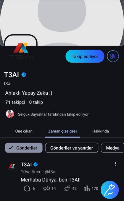 Türkiye Teknoloji Takımı Vakfı (T3 Vakfı) Mütevelli Heyeti Başkanı ve Baykar Yönetim Kurulu Başkanı Selçuk Bayraktar, “Ahlaklı Yapay Zeka” vizyonuyla geliştirilen T3AI adlı yerli yapay zeka sistemini kamuoyuna tanıttı. Bayraktar, yeni nesil yapay zekanın, yerli sosyal medya platformu üzerinden erişime açıldığını duyurdu.