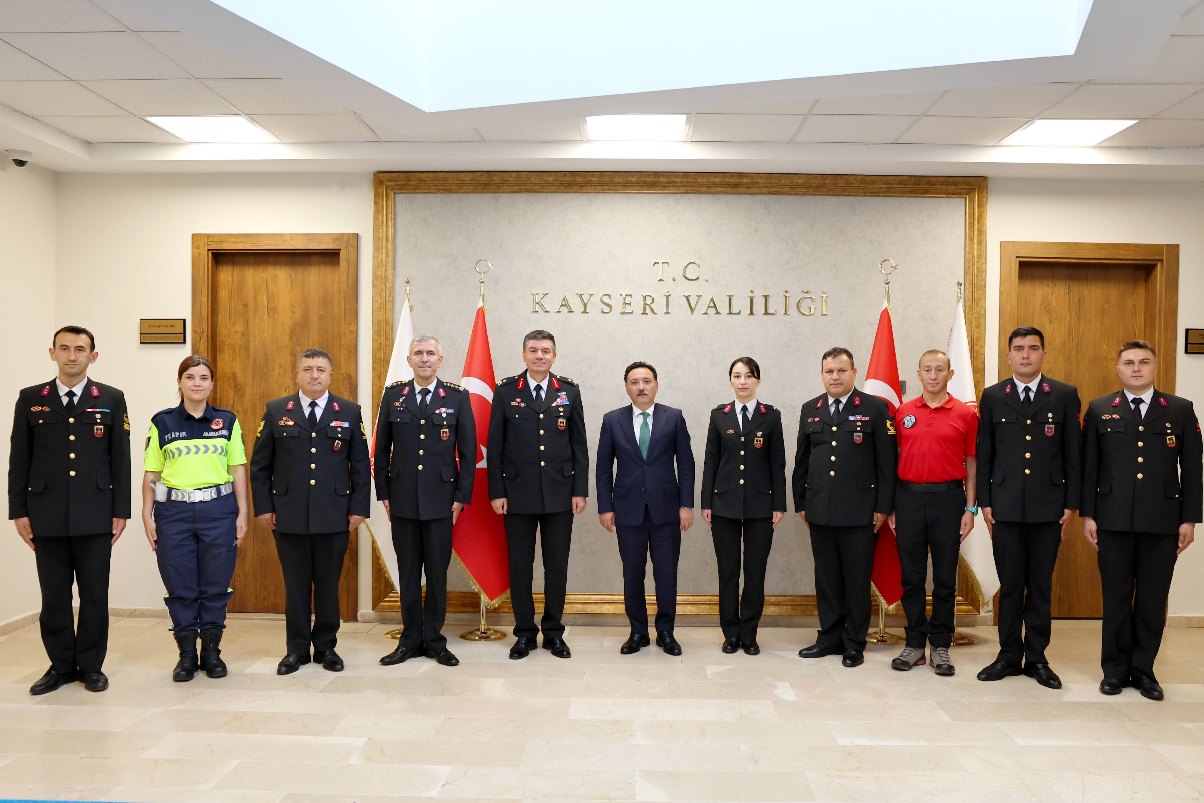 Kayseri Valisi Sayın Gökmen Çiçek, Türk Jandarma Teşkilatı’nın 186’ncı kuruluş yıl dönümü münasebetiyle İl Jandarma Komutanı Tuğgeneral Hakan Dedebağı ve jandarma personelini makamında kabul etti.