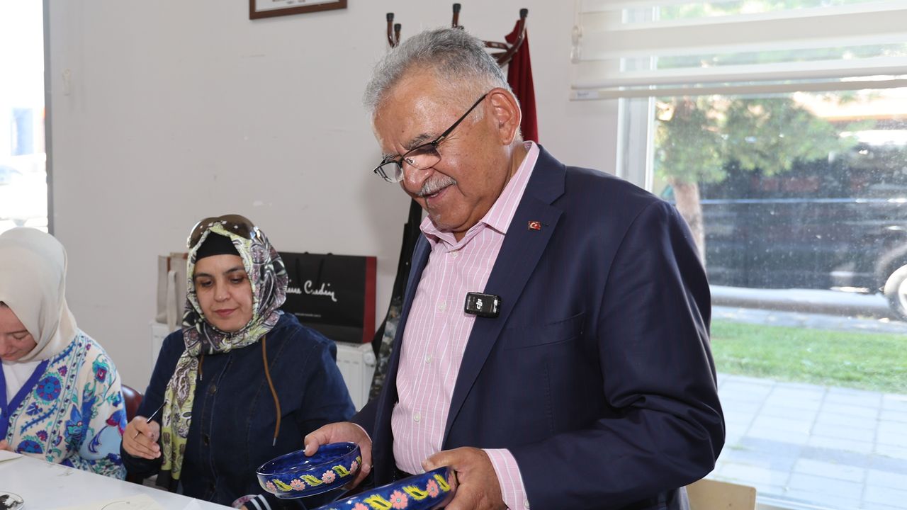 KAYMEK’te el becerileri ve mutfak kurslarında bulunan kursiyerlerle buluşan Büyükkılıç, ortaya konulan eserleri yakından inceleyip kursiyerlerle hatıra fotoğrafı çekindi. Ayrıca, geleceğin tiyatrocuları olan minik kursiyerlerle bir araya gelen Başkan, tiyatronun önemine vurgu yaparak öğrencilere nasihatlerde bulundu ve Kayserispor forması hediye etti.