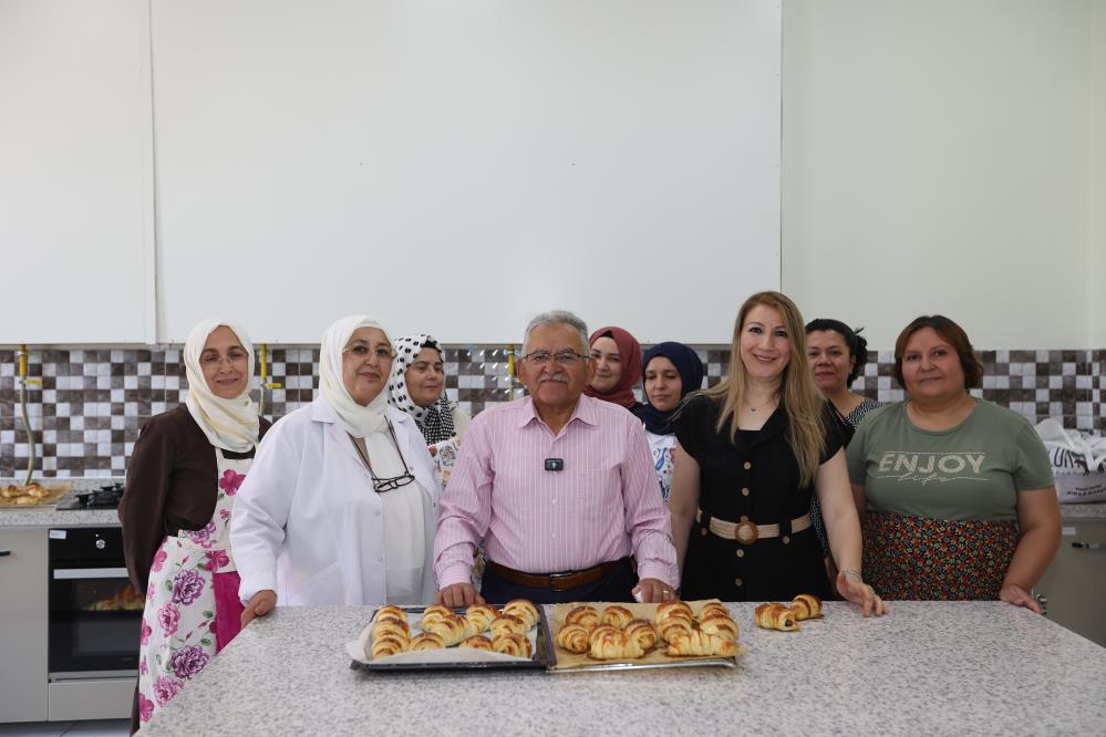 Sosyal belediyecilik ve gönül belediyeciliğinin en güzel örneklerinin sergilendiği hizmet birimlerini ziyaret eden Başkan Büyükkılıç, kursiyerler ve personelle bir araya gelerek hem sohbet etti hem de çalışmalar hakkında bilgi aldı.