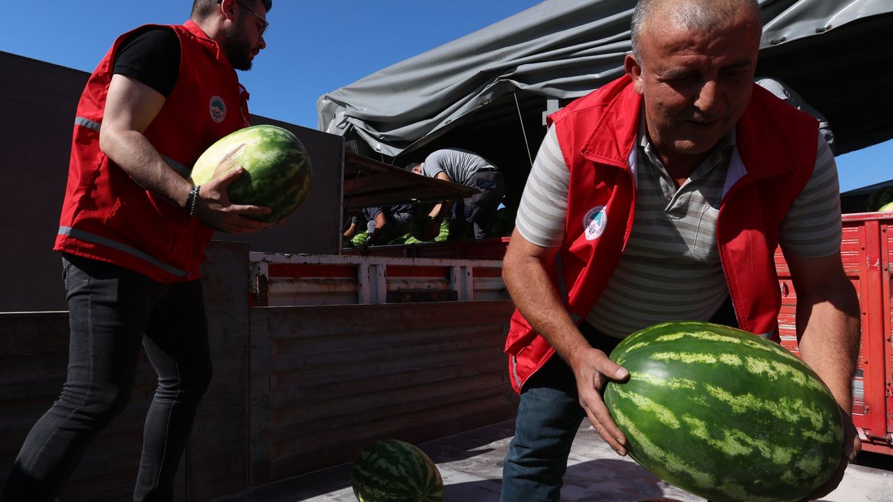 Dağıtım esnasında Büyükşehir Belediyesi personeli, karpuzları teslim ettikleri her aileye “Afiyet olsun, Başkanımız Memduh Büyükkılıç’ın selamlarını iletiyoruz” diyerek destek mesajını da iletti.