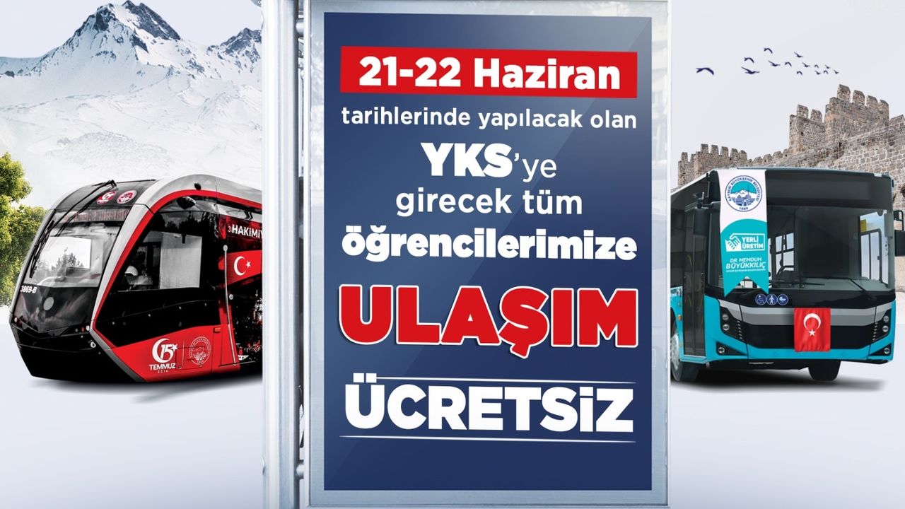 Kayseri Büyükşehir Belediye Başkanı Dr. Memduh Büyükkılıç, hafta sonu gerçekleştirilecek YKS sınavı öncesinde önemli açıklamalarda bulundu. Gençlerin eğitimine verdikleri önemin altını çizen Büyükkılıç, sınava katılacak adaylara ücretsiz toplu ulaşım müjdesi verdi. 21-22 Haziran tarihlerinde gerçekleştirilecek sınavda adaylar, sınav giriş belgelerini göstermeleri halinde belediyeye ait otobüs ve raylı sistemden ücretsiz faydalanabilecek.