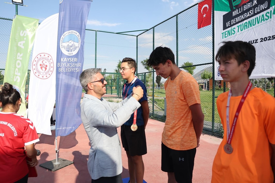 Kayseri Büyükşehir Belediyesi, 15 Temmuz Demokrasi ve Millî Birlik Günü’nün 9. yıl dönümünde sporun birleştirici gücünü yansıtan anlamlı bir organizasyona imza attı. Büyükşehir Belediyesi bünyesindeki Spor A.Ş. tarafından, 10-15 Temmuz tarihleri arasında Recep Tayyip Erdoğan Millet Bahçesi’nde düzenlenen tenis turnuvası, yoğun katılımla tamamlandı.