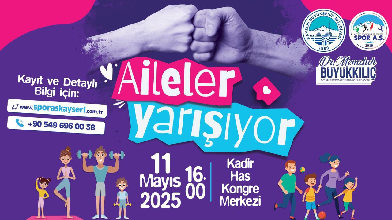 Kayseri Büyükşehir Belediyesi, 2025 Aile Yılı etkinlikleri çerçevesinde 11 Mayıs 2025 tarihinde Kadir Has Kongre Merkezi’nde “Aileler Yarışıyor” adlı eğlenceli ve rekabet dolu bir etkinlik düzenleyecek. Büyükşehir Spor A.Ş. tarafından organize edilen bu etkinlik, aile bağlarını güçlendirmeyi amaçlarken, Kayserililere spor dolu bir gün yaşatacak.