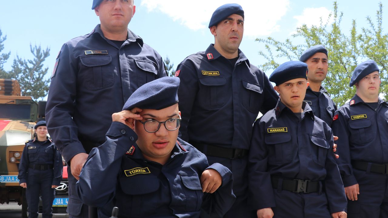 Sivas İl Jandarma Komutanlığı tarafından düzenlenen temsili askerlik töreninde, 9 engelli genç bir günlük askerlik heyecanı yaşadı. Sivas İl Jandarma Komutanlığı yerleşkesinde düzenlenen program, saygı duruşu ve İstiklal Marşı’nın okunmasıyla başladı. Ardından engelli bireyler, Türk Bayrağı’na el basarak askerlik yemini etti.
