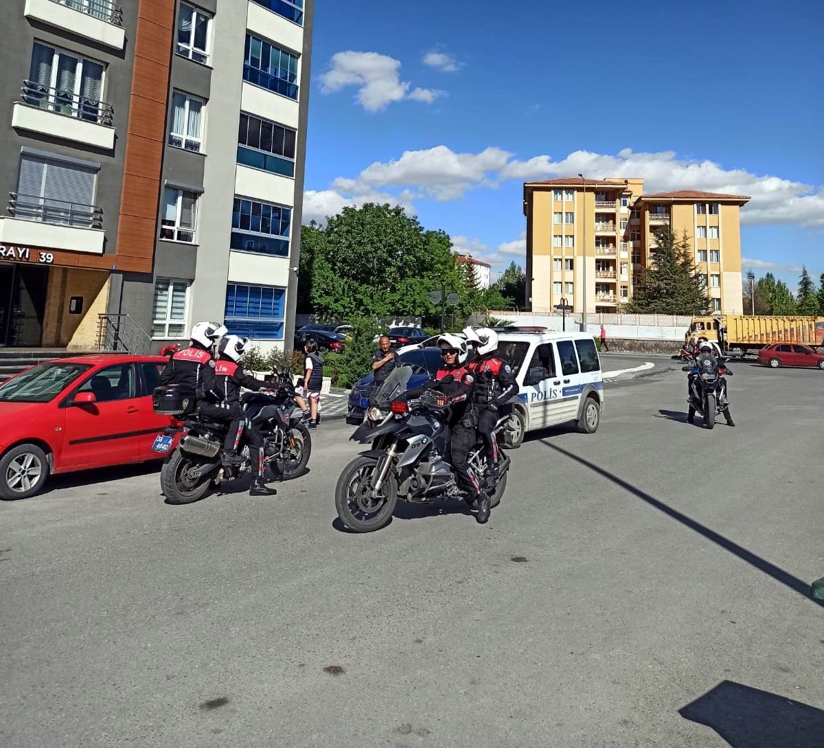 Asayiş Şube Müdürlüğü’ne bağlı Motosikletli Polis Timleri Amirliği ve Devriye Ekipler Amirliği’nce ’Kapan’ uygulaması çerçevesinde 6 kip ve 14 personelin katılımıyla Hunat Bölgesi, Seyyid Burhanetin Bulvarı, Hoca Ahmet Yesevi Caddesi, Nuh Naci Yazgan Caddesi ve Sivas Bulvarı arasında genel asayiş uygulaması yapıldı. Şüpheli şahıslar ve araçlara yönelik yapılan kontrollerde 357 şahıs ile 63 aracın sorgusu yapıldı.