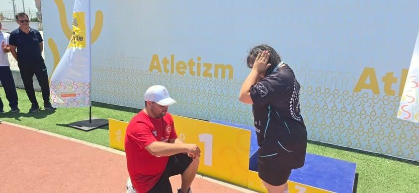 Down sendromlu sporcuların cirit atma branşında kıyasıya mücadele ettiği yarışmada, Kayserili milli sporcu Nisanaz Öztürk Türkiye şampiyonu olarak altın madalyanın sahibi oldu. Ancak şampiyonluk kadar konuşulan bir diğer an, madalya töreninde yaşandı.