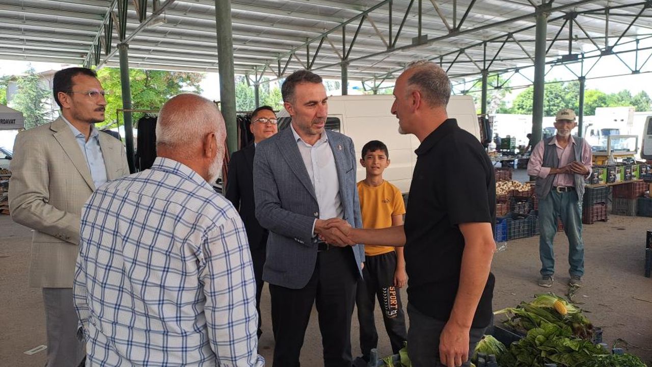İlçe merkezinde esnaf ve pazar yeri ziyaretleri de gerçekleştiren Saadet Partisi heyeti, vatandaşlarla birebir temas kurdu. İl Başkanı Altun, pazarda karşılaştığı bir çocuğa tuttuğu takımın formasını hediye ederek gönüllere dokundu.