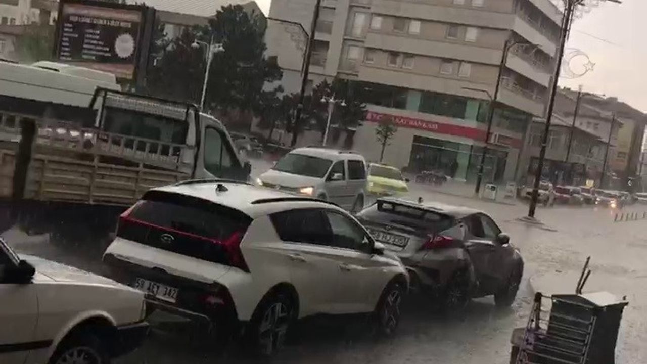 Sivas’ın Şarkışla ilçesinde öğle saatlerinde başlayan yağmur, kısa süre içinde yerini şiddetli dolu yağışına bıraktı. Birkaç dakika süren dolu, hayatı olumsuz etkiledi. Yağışa hazırlıksız yakalanan vatandaşlar ve araç sürücüleri, zor anlar yaşadı.