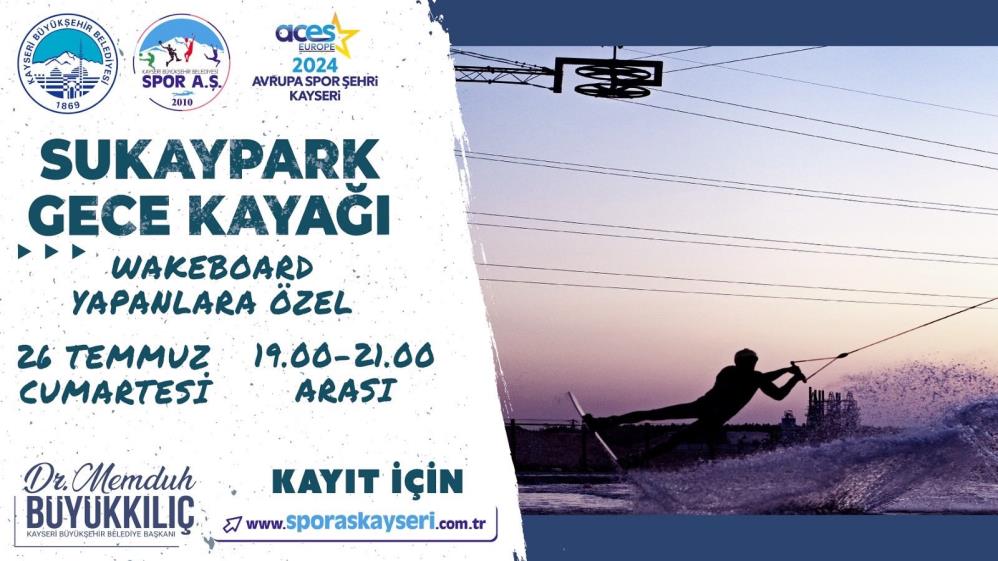 Kayseri Büyükşehir Belediye Başkanı Dr. Memduh Büyükkılıç’ın spora ve sağlıklı yaşama verdiği önem doğrultusunda faaliyetlerini sürdüren Spor A.Ş., yaz akşamlarını sporla renklendirmeye devam ediyor. Bu kapsamda, Anadolu Harikalar Diyarı içerisinde yer alan Sukaypark’ta, 26 Temmuz Cumartesi günü saat 19.00-21.00 arasında “Gece Kayağı” etkinliği düzenlenecek.