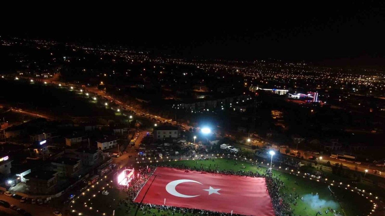 İlçede bulunan paraşüt indirme alanında gerçekleşen törene, Talas Kaymakamı Yaşar Dönmez, Talas Belediye Başkanı Mustafa Yalçın, İl Gençlik ve Spor Müdürü Ali İhsan Kabakçı, AK Parti İl Başkanı Fatih Üzüm ve çok sayıda vatandaş katıldı. Törende 45 metre genişliğe 67,5 metre uzunluğa ve 3 bin 68 metrekare alan genişliği ile dünyanın en büyük Türk bayrağı vatandaşlar ve protokol üyeleri tarafından açılarak dalgalandırıldı.