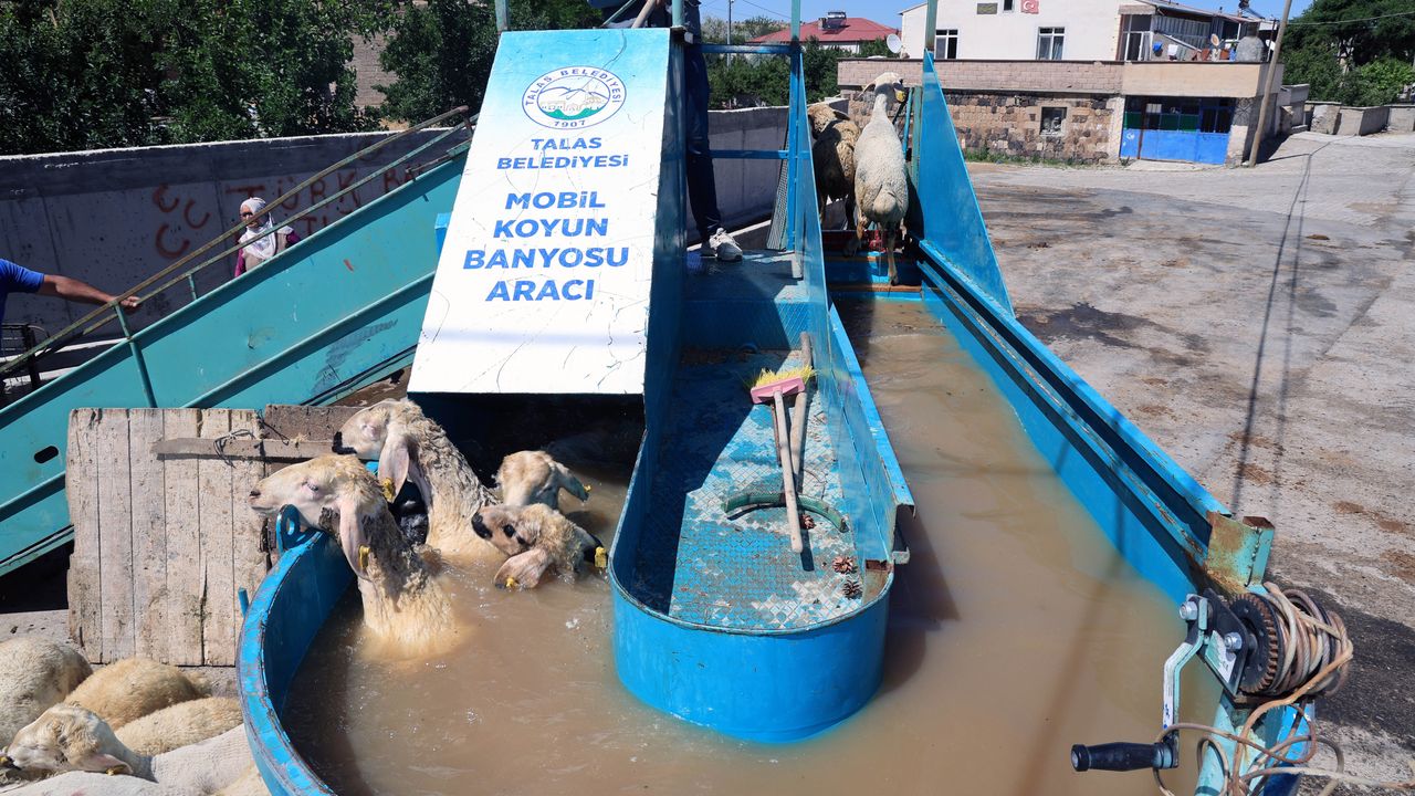 Kayseri'nin Talas ilçesinde yaz aylarında artış gösteren kenelere karşı yürütülen mücadele bu yıl da devam ediyor. Talas Belediyesi tarafından kırsal mahallelerde başlatılan mobil koyun banyoluğu uygulamasının ilk durağı Yazyurdu Mahallesi oldu. Veteriner hekimlerin gözetiminde yapılan ilaçlı su uygulaması sayesinde küçükbaş hayvanlar, kene ve benzeri dış parazitlerden arındırılıyor.