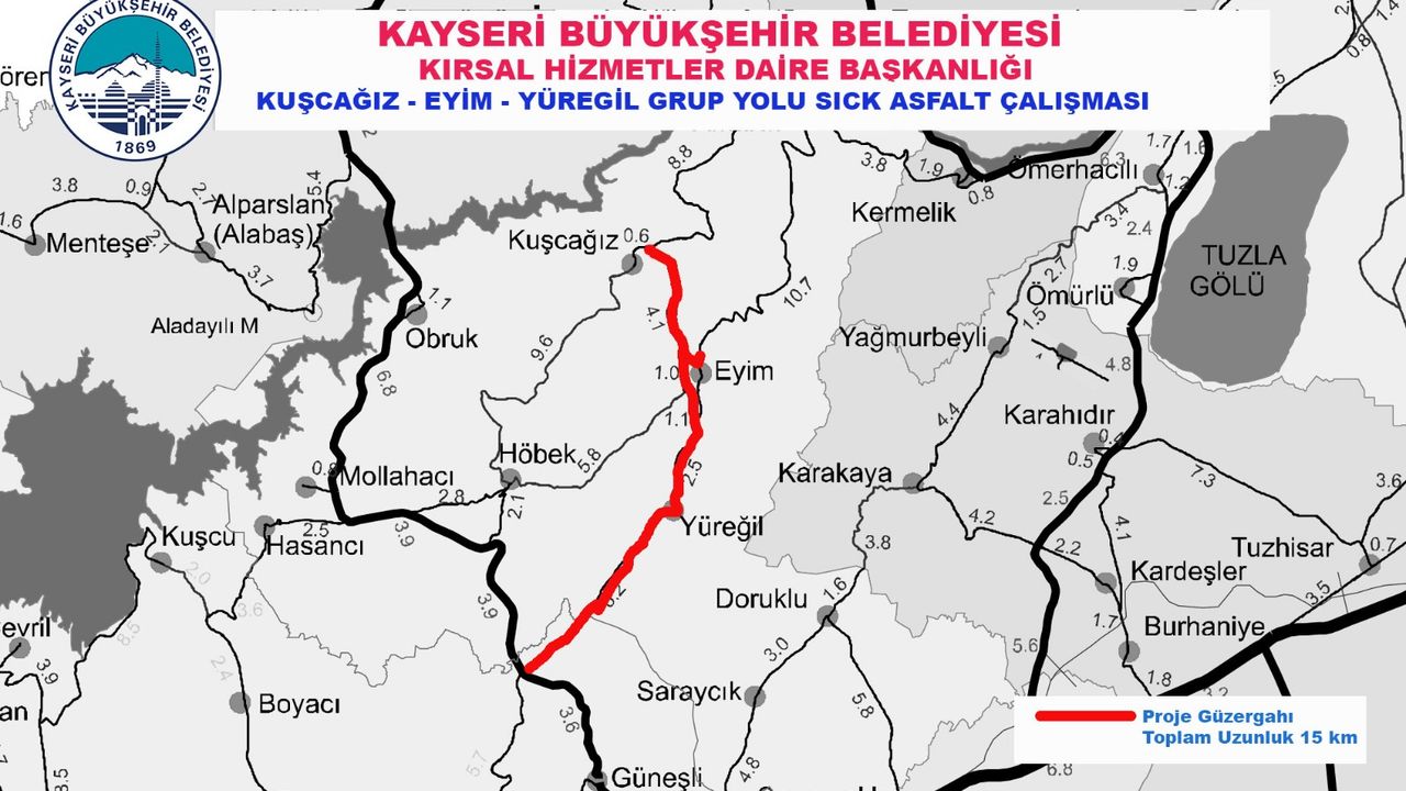Kayseri Büyükşehir Belediyesi, kırsal mahallelerin ulaşım altyapısını güçlendirmeye devam ediyor. Bu kapsamda, Kocasinan ilçesindeki Yüreğil, Eyim ve Kuşcağız mahallelerini birbirine bağlayan 15 kilometrelik grup yolunda yürütülen çalışmalar tamamlanma aşamasına geldi.